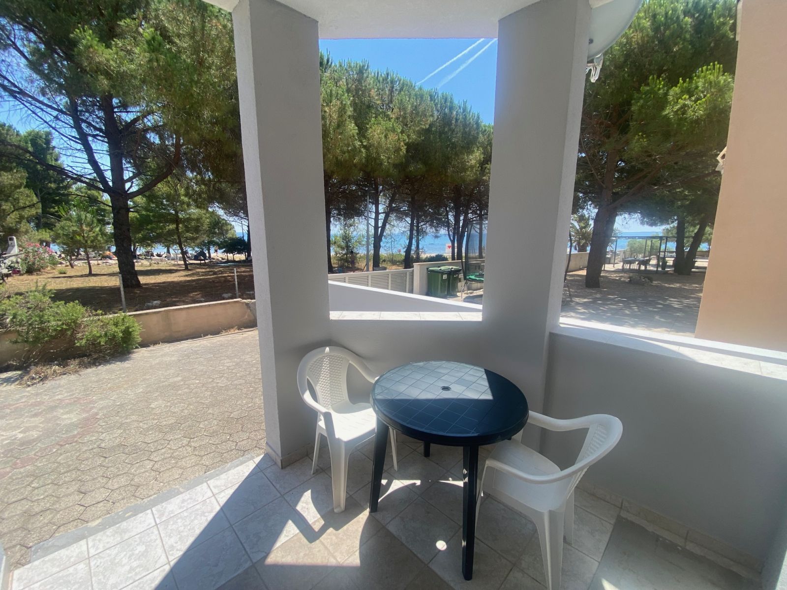 A tengerpart aprókavicsos, lassan mélyülő, kristálytiszta vizű. Minden apartmanhoz igényesen kialakított terasz és rendezett környezet tartozik. A teraszokon kerti ülőgarnitúra megtalálható.